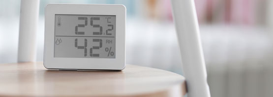 Monitor and record temperature and humidity levels regularly. Bear in mind that indoor humidity will typically be lowest during the winter months when the heating is on.
